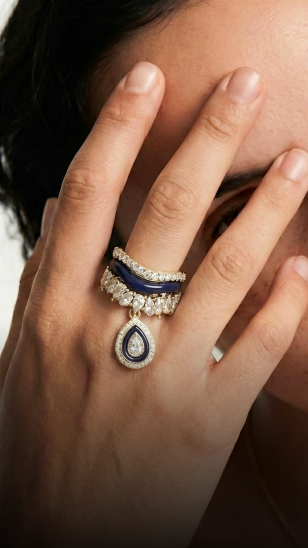 Sorbet Swirl Enamel & Diamond Ring Duo