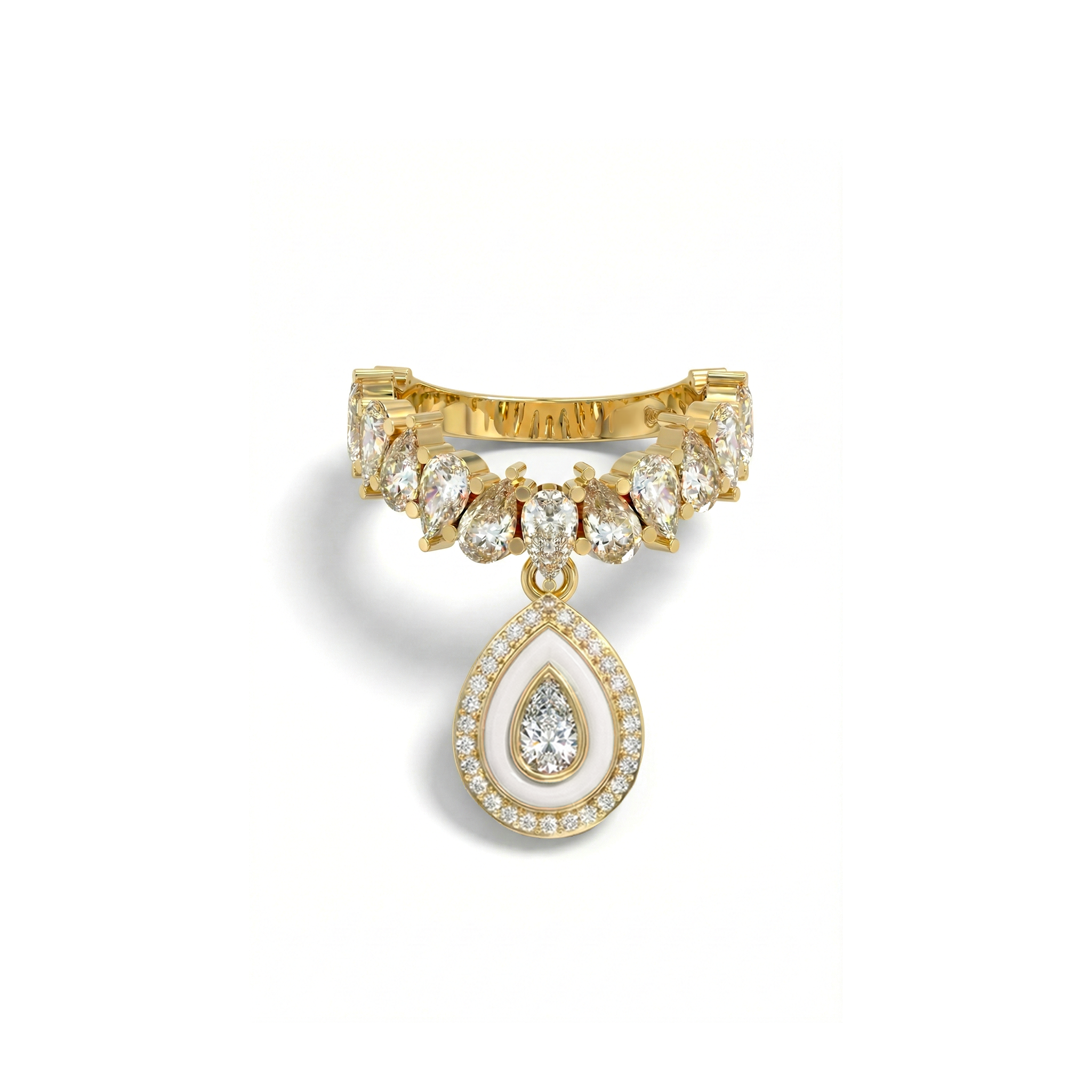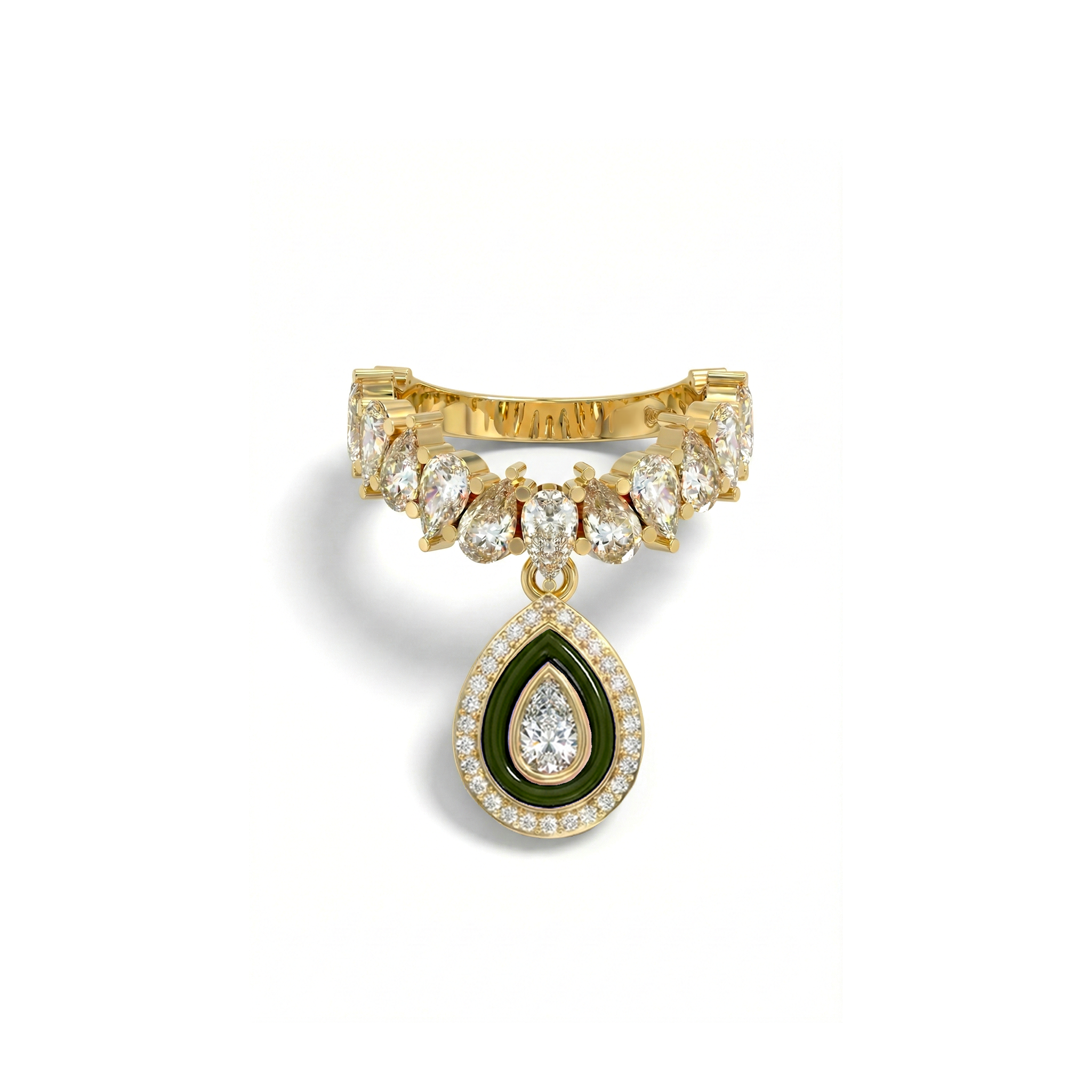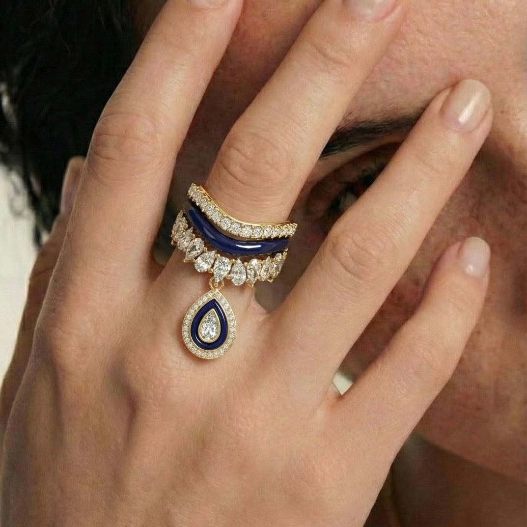Elevate your jewelry game with our 18k gold-plated & Silver Rhodium Slinkie Charm stackable ring set. Featuring our Slinkie ring with teardrop stones and a teardrop charm adorned with Pave stones and enamel, this hypoallergenic brass ring offers endless ways to style and stack. Perfect for parties, cocktails, and bold statements.
