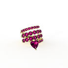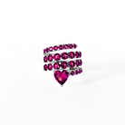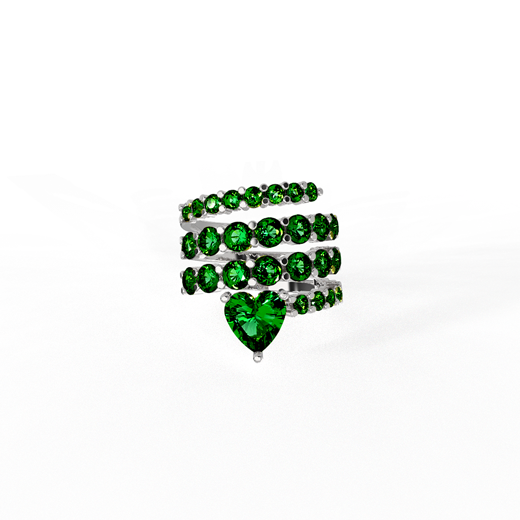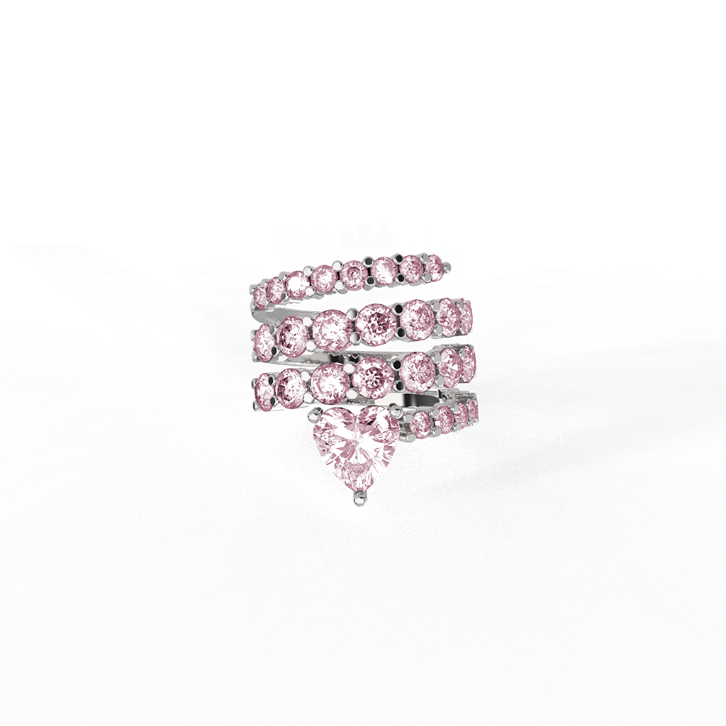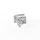 The Twirl Heart Drop Ring features multiple rows of brilliant round cut cubic zirconia stones wrapped in a fluid spiral silhouette.