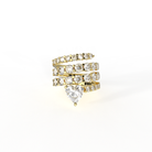 Suspended beneath the sculpted layers, a heart shaped stone anchors the design, catching the light with striking brilliance and adding a soft yet powerful focal point. Crafted in premium brass and finished with rich 18K gold micron plating, this statement ring blends modern structure with timeless sparkle. Despite its layered presence, it is thoughtfully designed to feel balanced and comfortable for effortless wear.